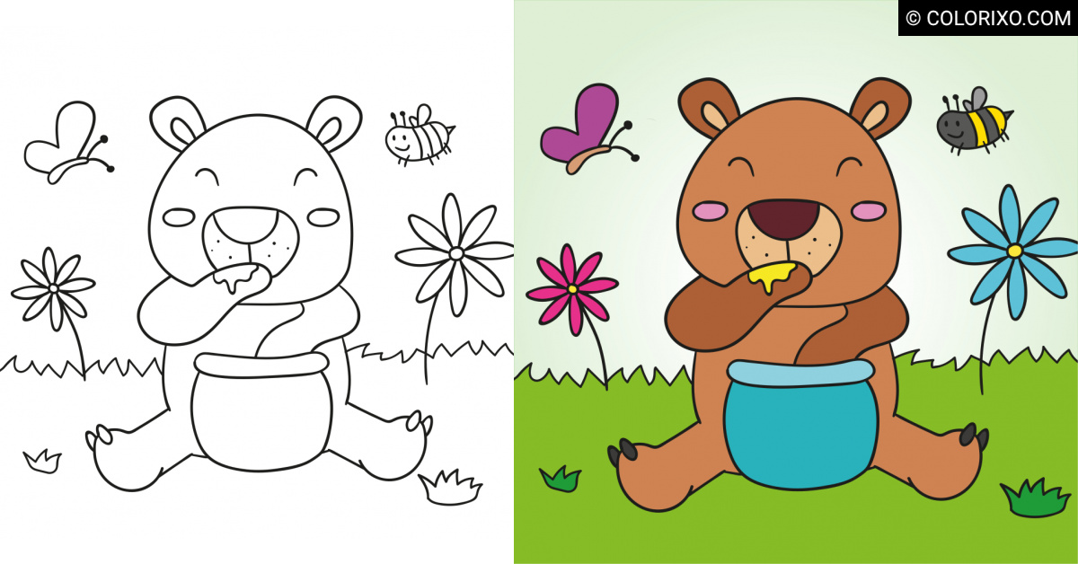 Omalovánky Medvídek s medem zdarma k vytisknutí •
